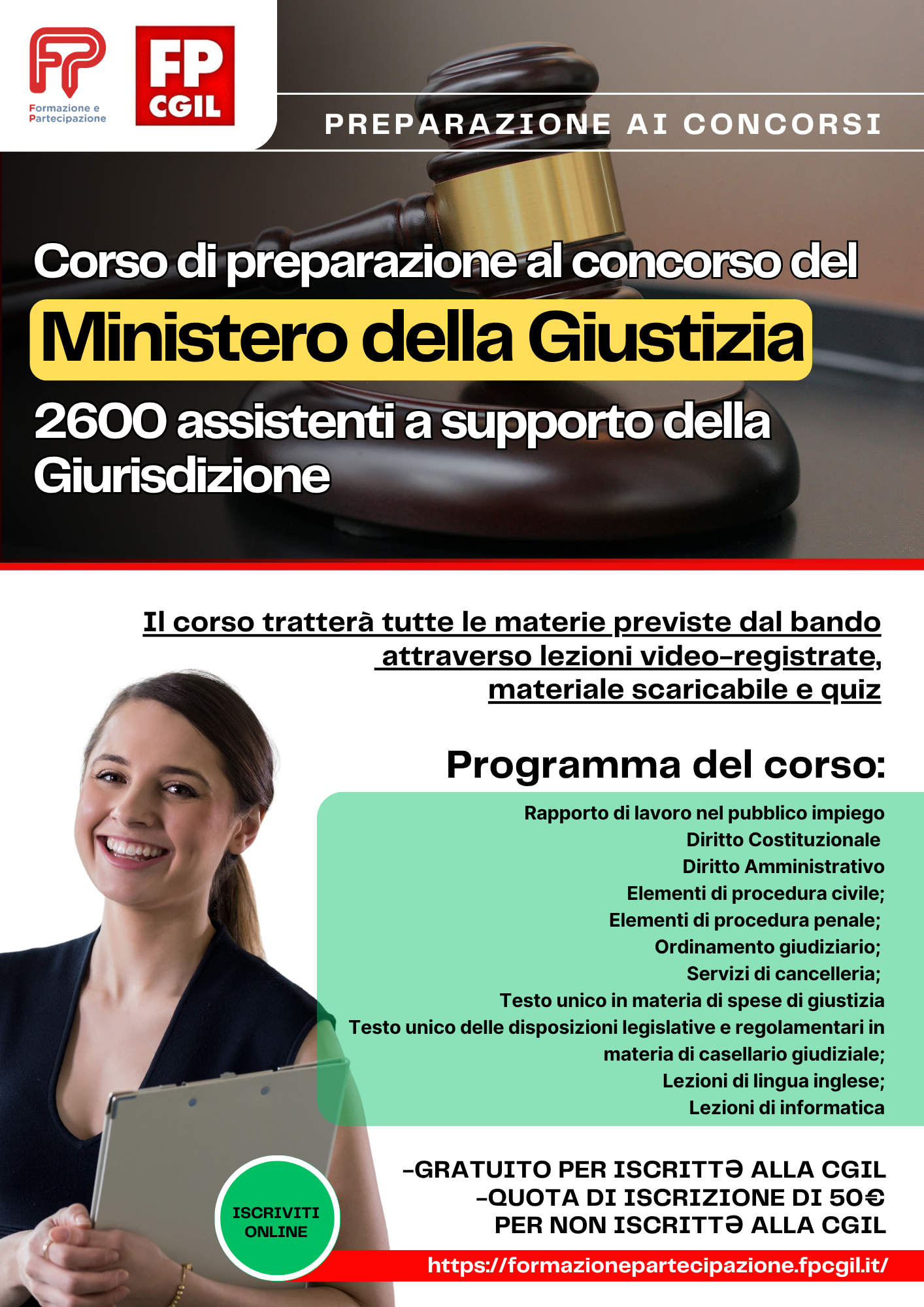 Corso di preparazione al concorso per 2600 unità nell’Area degli assistenti a supporto della giurisdizione e dei servizi di cancelleria del Ministero della Giustizia